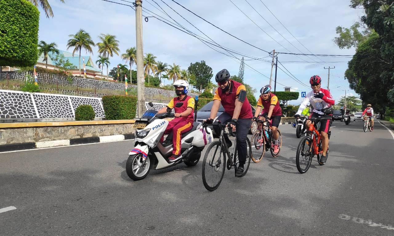 “Olahraga bersepeda ini bertujuan untuk meningkatkan daya tahan tubuh dan agar tetap bugar, sehat dalam bertugas, kata Kapolres” usai gowes.
