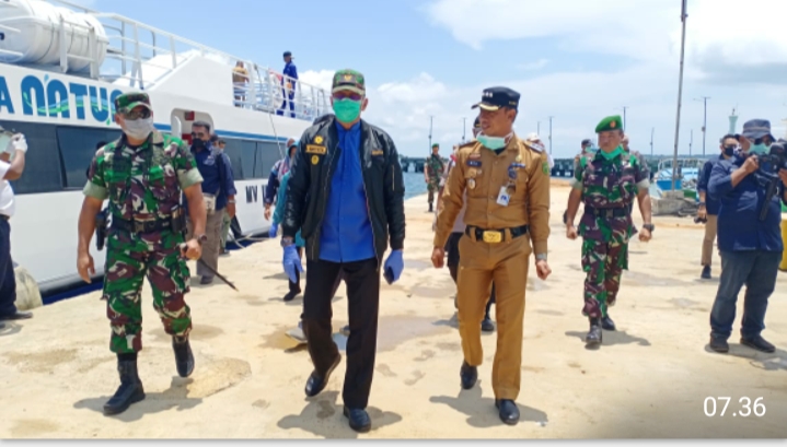 Kunjungan Letkol Ferry Kriswardana, S.Sos, bersamaan dengan rombongan Bupati Natuna Drs. Hamid Rizal, mengunakan transportasi laut kapal cepat Indra Perkasa, milik Pemkab Natuna.