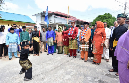 Kehadiran Bupati dan Wakil Bupati beserta rombongan disambut dengan pengalungan bunga dan pencak silat khas Kecamatan Tambelan juga disuguhi beras kunyit merupakan sakral penyambutan secara adat istiadat kedatangan tamu kehormatan oleh tokoh masyarakat setempat.