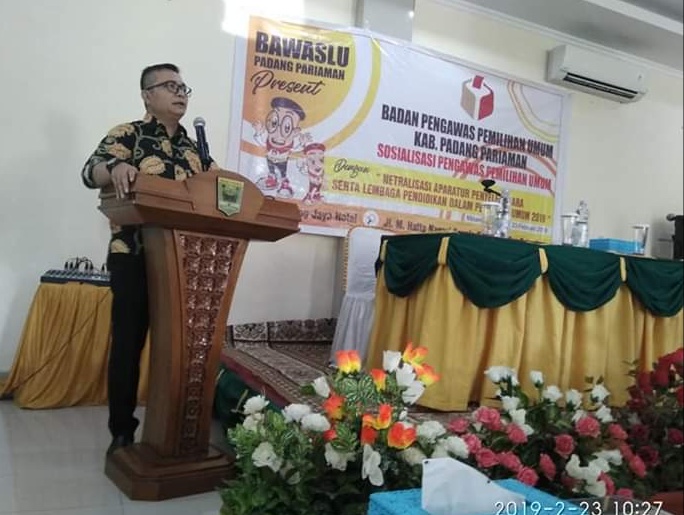 Hal tersebut disampaikan Ketua Badan Pengawas Pemilihan Umum (Bawaslu) Kabaupaten Padang Pariaman, Anton Ishaq di Hotel Minang Jaya Lubuk Alung, (23,24/2/2019)