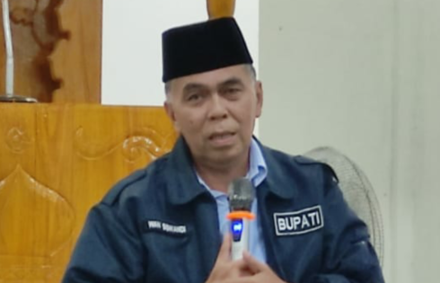 Seperti biasa, Bupati Natuna Wan Siswandi memberikan tausyiah agama, namun kali ini ia lakukan usai sholat isya sebelum akhirnya melaksanakan sholat taraweh berjamaah.