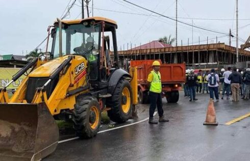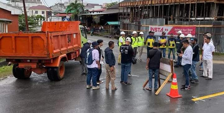 foto pekerja mulai menata jalan dan torotoar kota Dabo