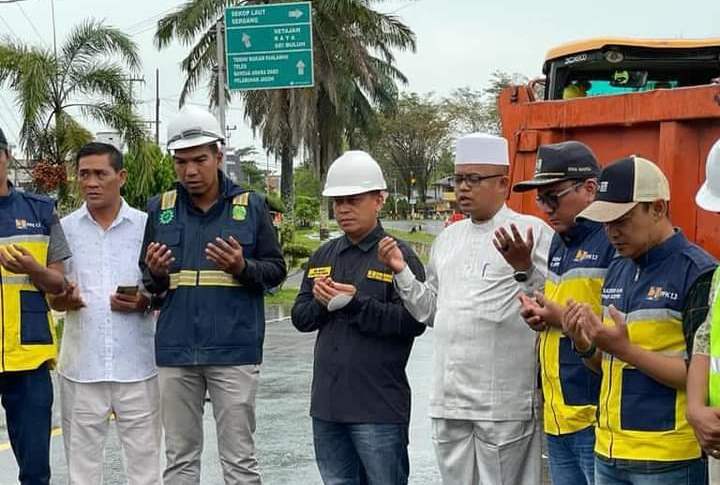 para pekerja saat berdo'a tanda dimulainya bekerja penataan kota Dabo Sinkep