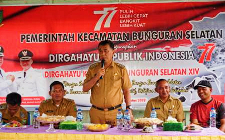 Sementara itu Camat Bunguran Selatan, Supardi dalam laporannya mengatakan bahwa kegiatan turnamen ini dilaksanakan dalam rangka memperingatk Hari Ulang Tahun (HUT) RI ke 77 sekaligus memperingati HUT Kecamatan Bunguran Selatan ke 14 yang merupakan kegiatan rutin pada setiap tahunnya.