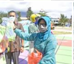 93 paket bantuan yang diberikan diantaranya, berupa bahan pangan, Alat Pelindung Diri (APD) berupa Kacamata, Masker dan sarung tangan). (hum/her)