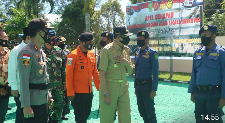 Natuna, leadernusantara.com-Antisipasi penyebaran Virus Corona Covid-19 dimasa perubahan iklim, diamana suhu yang selalu lembab dimusim penghujan dan bencana alam lainnya, Pemerintah Daerah Kabupaten Natuna, bersama instansi lainnya menggelar apel kesiapan penanganan bencana alam secara serentak.