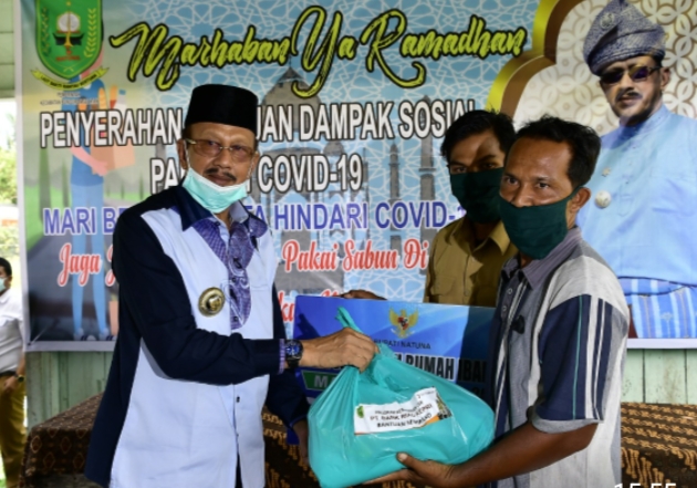 Natuna, Leadernusantara.com-Selasa, (12/05) Bupati Natuna Drs Hamid Rizal, M.Si, selaku ketua tim gugus tugas COVID-19 Kabupaten Natuna, terus membagikan paket sembako kepada warga terdampak COVID-19 di empat desa di Kecamatan Bunguran Selatan, Kabupaten Natuna, Provinsi Kepri.