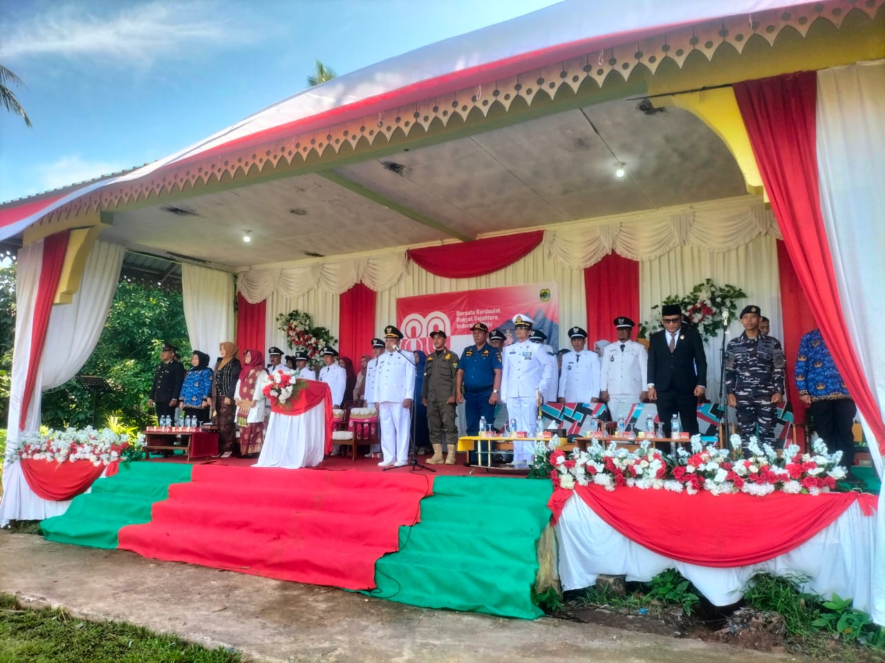 Camat lingga utara, Burhanuddin mengatakan dengan semangat kemerdekaan HUT RI ke80, pada momentum ini mari kita tingkatkan senergitas dan kekompakan untuk menuju Indonesia Maju.