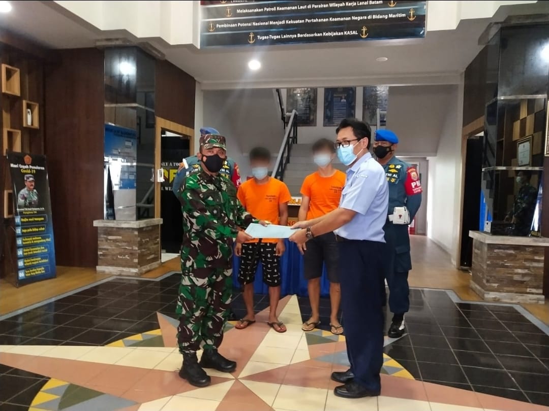 Kedua tersangka tersebut diserahkan oleh Komandan Lanal Batam (Danlanal Batam) Kolonel Laut (P) Sumantri K, M.M., kepada Kepala SKIPM Batam Anak Agung Gede Eka Susila, S.Pi., M.Sc., yang ditandai dengan penandatanganan Berita Acara (BA) dan berkas perkara kedua tersangka.