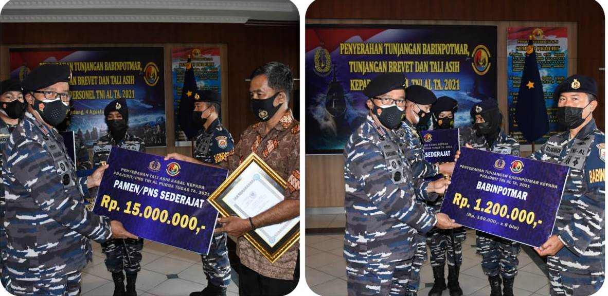 Pemberian berupa tali asih  yang dipimpin Kepala Staf Angkatan Laut (Kasal) Laksamana TNI Yudo Margono, S.E., M.M., secara virtual bertempat di Lobby Mako Lantamal II jalan Bukit Peti Peti Teluk Bayur Padang.