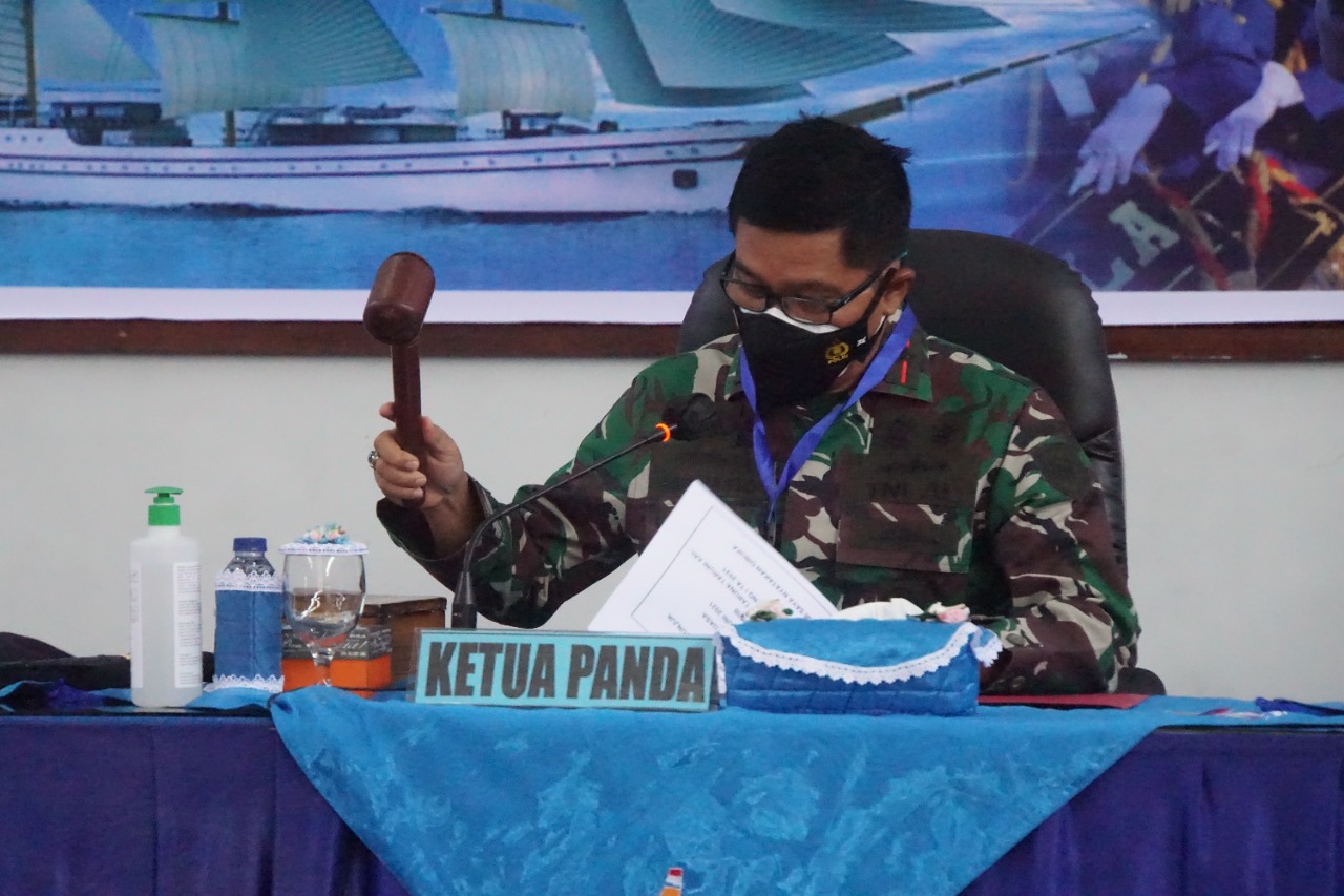 Komandan Pangkalan Utama TNI AL (Danlantamal) II Laksamana Pertama TNI Hargianto, S.E.,M.M.,M.Si (Han) selaku ketua Panitia daerah (Panda) Pimpin sidang penentuan terakhir daerah atau (Pantukhirda), pada penerimaan calon Taruna dan Taruni serta Calon Tamtama Prajurit Karir (PK) Gelombang I, Tahun Anggaran 2021, pada 21 Juni 2021.