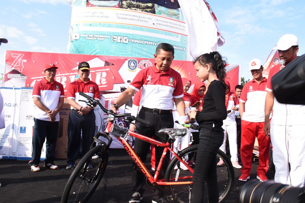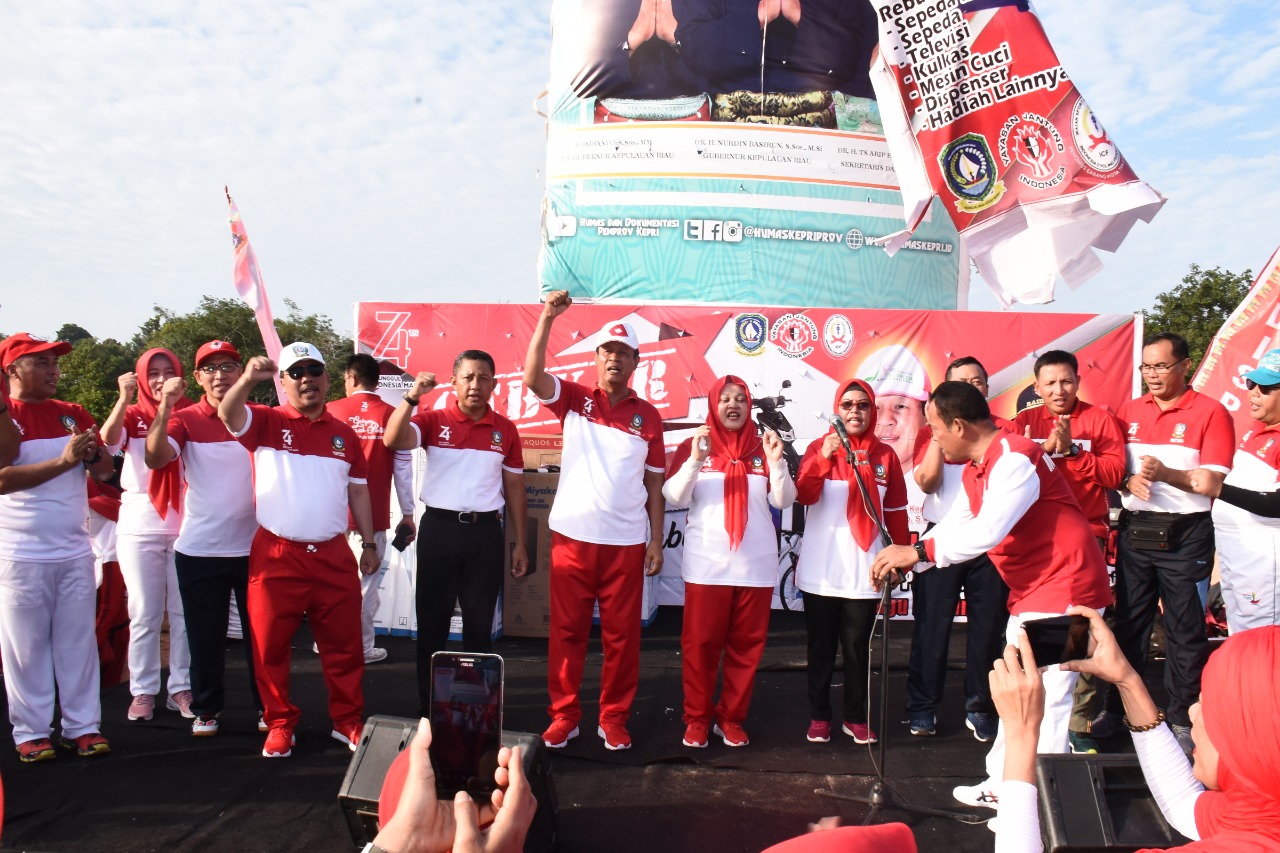 Dalam sambutannya, Plt.Gubernur Provinsi Kepri H. Isdianto, S.Sos., M.M., mengucapkan trimakasih kepada semua pihak yang turut mensukseskan acara Gebyar Merah Putih dalam rangka memeriahkan Peringatan HUT ke-74 RI di Kepulauan Riau.