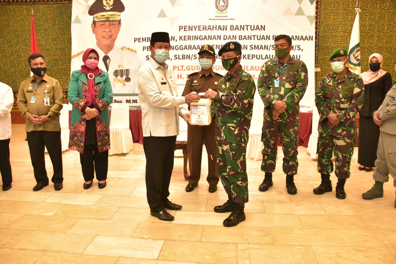 Tanjungpinang (leadernusantara.com) – TNI AL melalui Komandan Pangkalan Utama TNI Angkatan Laut (Danlantamal) IV Tanjungpinang Laksamana Pertama TNI Arsyad Abdullah, S.E., M.A.P., di Gedung Daerah Jl. S.M.Amin No.1 Tanjungpinang Kepri, menyerahkan sumbangan bahan yang diperlukan untuk penanganan Covid-19, dari Temasek Foundation International Singapura, kepada Plt. Gubernur Provinsi Kepri H. Isdianto, S.Sos., M.M., Selasa (26/5/2020).
