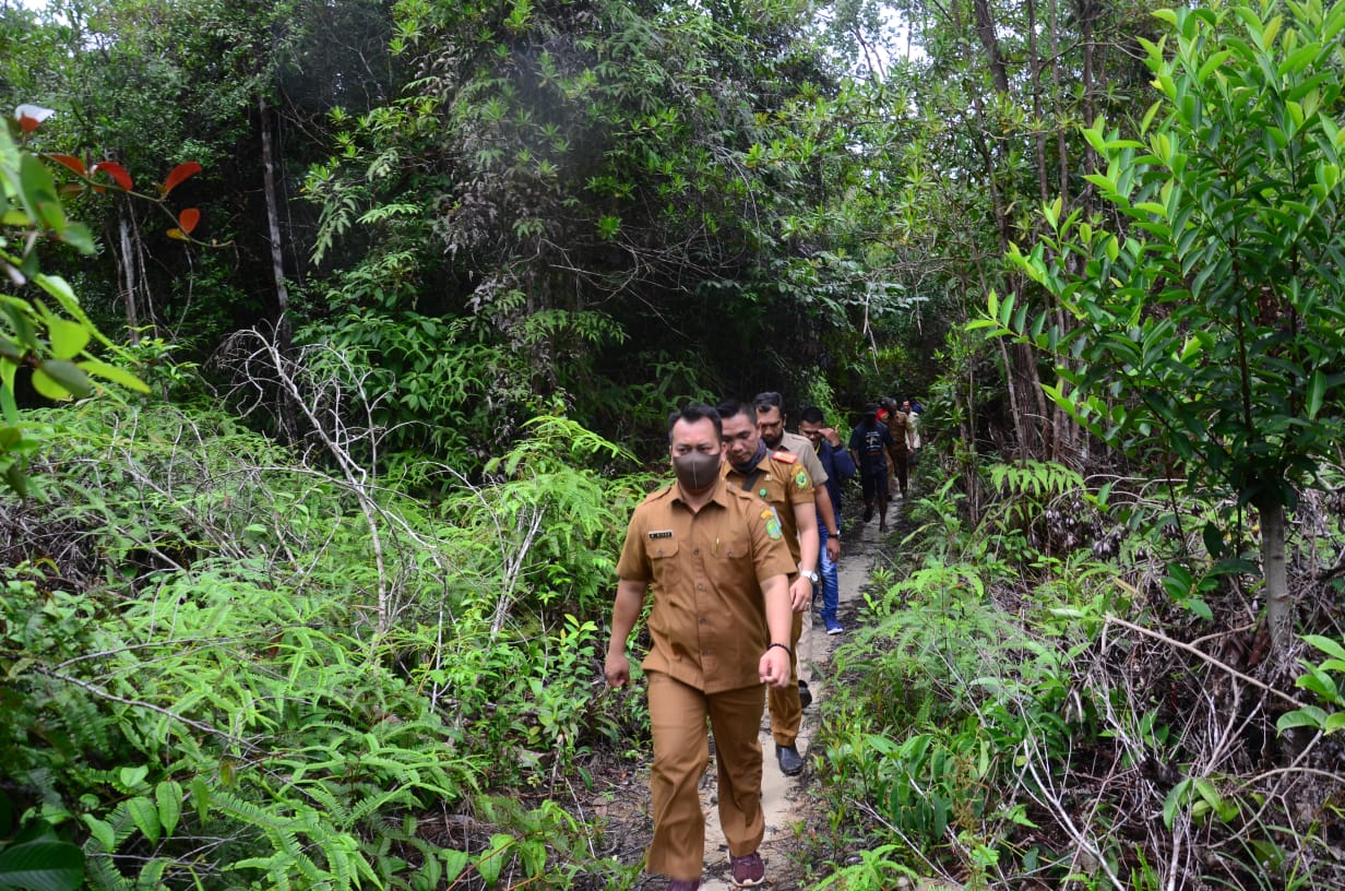 Menempuh lokasi yang cukup lumayan jauh masuk ke dalam hutan, tidak menyrutkan niat Wakil Bupati Lingga M.Nizar didampingi segenap perangkat pemerintahan setempat dengan berjalan kaki sejauh dua kilo meter hingga sampai ke sumber mata air di hutan Medap.