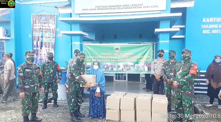 Aksi sosial membagikan sembako kepada Warga dalam rangka memperingati dan menyambut Hari Ulang Tahun (HUT) Komando Daerah Militer (Kodam) I/Bukit Barisan yang ke 70 Tahun, jatuh pada tanggal 20 Juni 2020.
