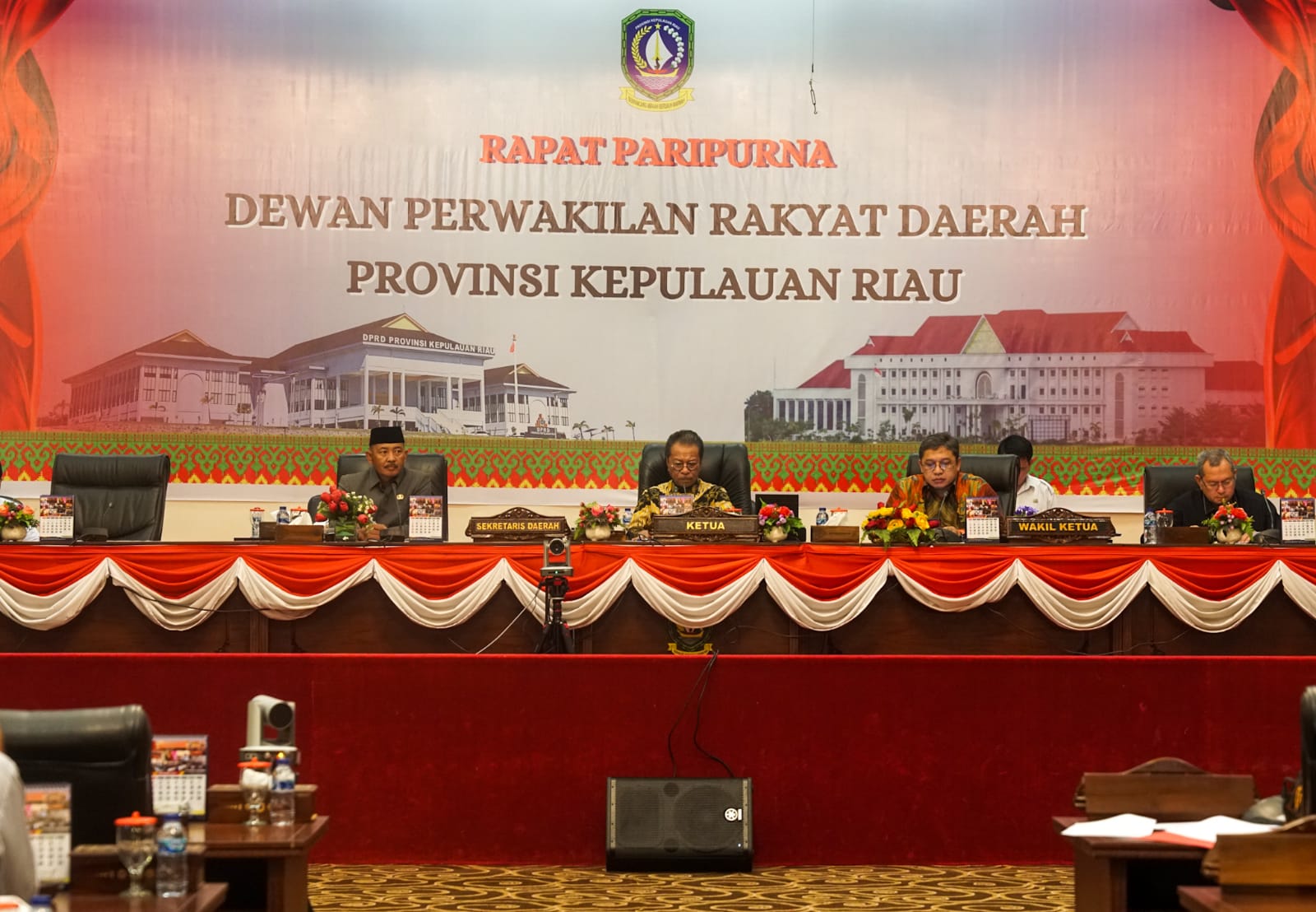 Rapat Paripurna dipimpin langsung oleh Ketua DPRD Provinsi Kepri Jumaga Nadeak didampingi Wakil Ketua II Raden Hari Tjahyono.