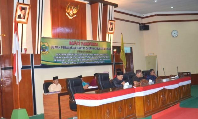 Lingga (Leader)  – Rapat Paripurna Dewan Perwakilan Rakyat Daerah (DPRD) Kabupaten Lingga penyampaian keputusan akhir dewan perwakilan rakyat daerah Kabupaten Lingga, tentang  laporan keterangan pertanggungjawaban (LKPJ) Bupati Lingga Tahun Anggaran 2018. Senin 13 Mei 2019.