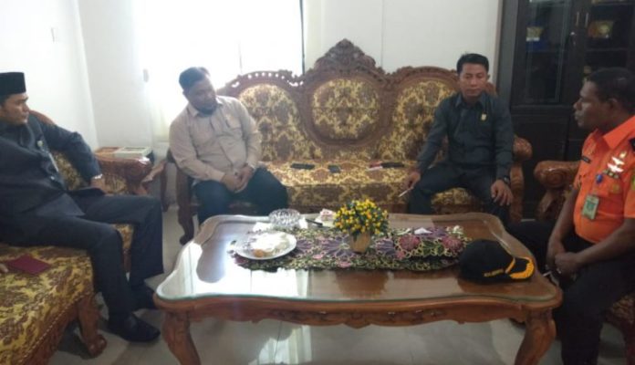 Rusdi dan Kadis Perkim, diruang kerjanya kantor DPRD Natuna Hadi Chandra membahas terkait usulan lahan Hibah untuk Faslabuh Dermaga KN 235 Sasikirana dan pembangunan pos Unit Siaga SAR di Kecamatan Pulau Laut.