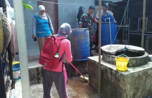 Tanjungpinang, Leader Nusantara – Bhabinkamtibmas Brigadir Alex Shandro bersama juru Pemantau Jentik (Jumantik) Dinas Kesehatan Kota Tanjungpinang mengecek tempat penampungan air yang berpotensi berkembang biaknya nyamuk, Sabtu (16/2/2019).
