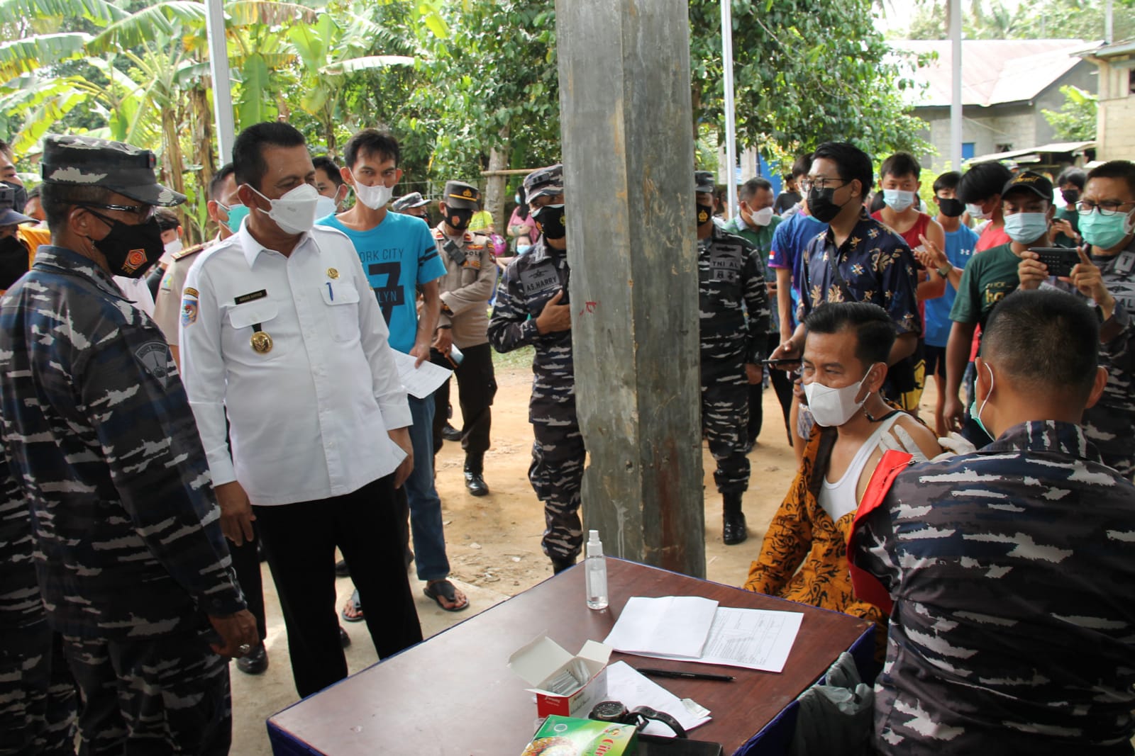 foto Gubernur Kepri didampingi Wadan Lantamal IV meninjau Vaksinasi yang dilakukan Ljajaran Lantamal IV di Kampung Bugis