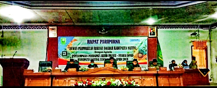 Natuna, leadernusantara.com-Bupati Natuna, Drs. Hamid Rizal, M.SI, Selasa, (14/07) siang tadi menghadiri rapat Paripurna Dewan Perwakilan Rakyat Daerah (DPRD) Kabupaten Natuna dalam agenda penyampaian pendapat fraksi-fraksi DPRD Natuna tentang Laporan Pertanggungjawaban Pelaksanaan (LPP) Anggaran Tahun 2019.