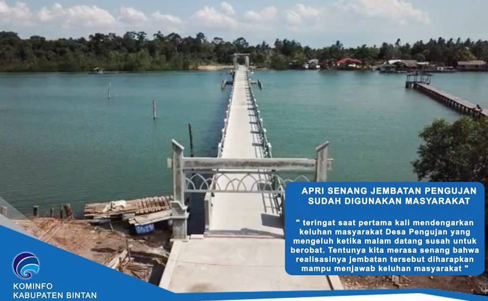 Bupati Bintan H Apri Sujadi, S.Sos mengharapkan, Agar pembangunan jembatan ini mampu memenuhi ekspektasi masyarakat Desa Pengujan sudah lama ingin realisasi keberadaan jembatan terseut yang sangat dibutuhkan untuk rentang jarak tempuh dari Desa 1 ke Desa II daerah Penhujan.