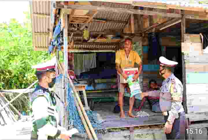 Natuna, leadernusantara.com – Dalam Rangka Hari Ulang Tahun Lalu Lintas Bhayangkara Ke-66, Kapolres Natuna AKBP Ike Krisnadian, di damping Kasat Lantas Polres Natuna IPTU Yulizar Sasono, memberikan bantuan paket sembako untuk masyarakat tidak mampu yang terdampak covid 19, Jum’at (24/09/2021).