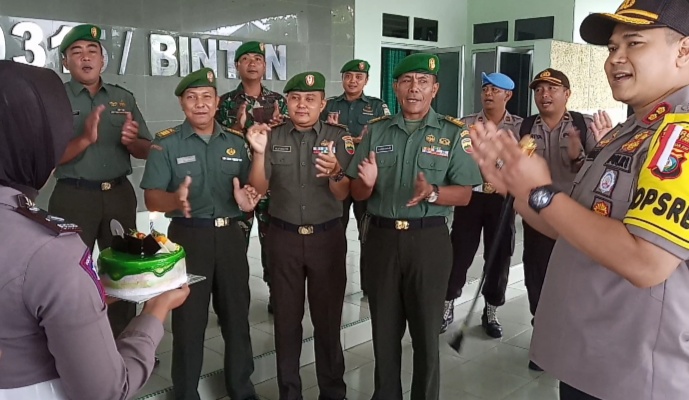 “Harapannya adalah agar TNI-Polri terus solid dalam melaksanakan tugas, mengawal NKRI, menyatukan seluruh rakyat. Saya mewakili Dandim 0315/Bintan karena kebetulan Dandim sedang ada agenda tugas di Batam. Maka dari itu kami mengucapkan terima kasih banyak atas kejutan dari Kapolres Tanjungpinang beserta jajarannya,” ucap Kapten Inf Januwar.
