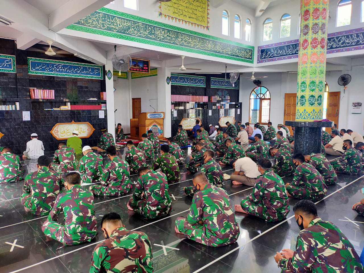 Kegiatan Do’a bersama di mesjid Hajar Aswad diawali dengan sholat dzuhur berjemaah yang dipimpin oleh Kepala Dinas Administrasi Personel (Kadisminpers) Lantamal IV Letkol Marinir Drs Dadan Solahudin Alayubi.