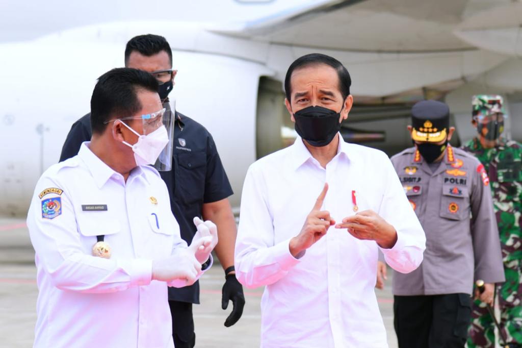 Saat berada di Gedung Daerah Provinsi Kepri Presiden Republik Indonesia Ir. H. Joko Widodo menyampaikan ucapan terima kasih atas kinerja perangkat daerah beserta gugustugas dalam penanganan Covid-19, di Kepri, kata Jokowi.