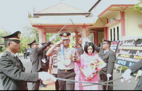 Sebelumnya Kapores AKBP Nugroho bersama istri tercintanya Juariah, dilepas dengan upacara Pedang Pora oleh jajaran Perwira Polres Natuna.