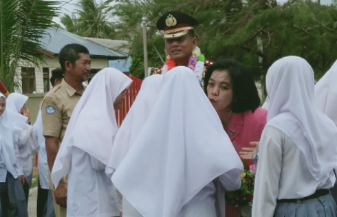 AKBP Nugroho pun turun dari mobil untuk bersalaman dan foto bersama, dengan siswa dan para guru yang ikut melepasnya pagi itu.