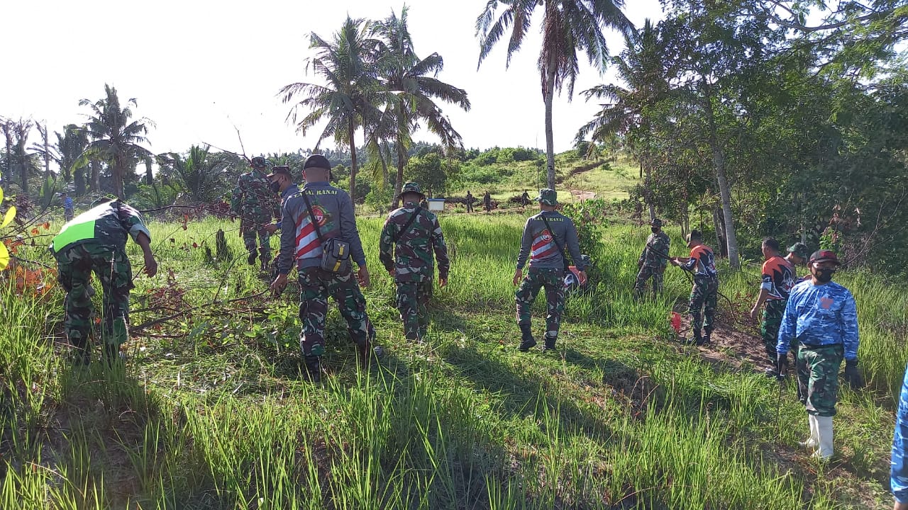 Natuna (Leadernusantara.com) – Satuan TNI diwilayah Kabupaten Natuna bersama masyarakat mengadakan program Karya Bakti TNI penyiapan lahan seluas 21.779 meter persegi sebagai Tempat Pemakaman Umum (TPU) khusus Covid-19 yang berlokasi di TPU Batu Kapal – Senubing Kecamatan Bunguran Timur Kabupaten Natuna Kepulauan Riau, pada Selasa pagi 12 Juli 2021.