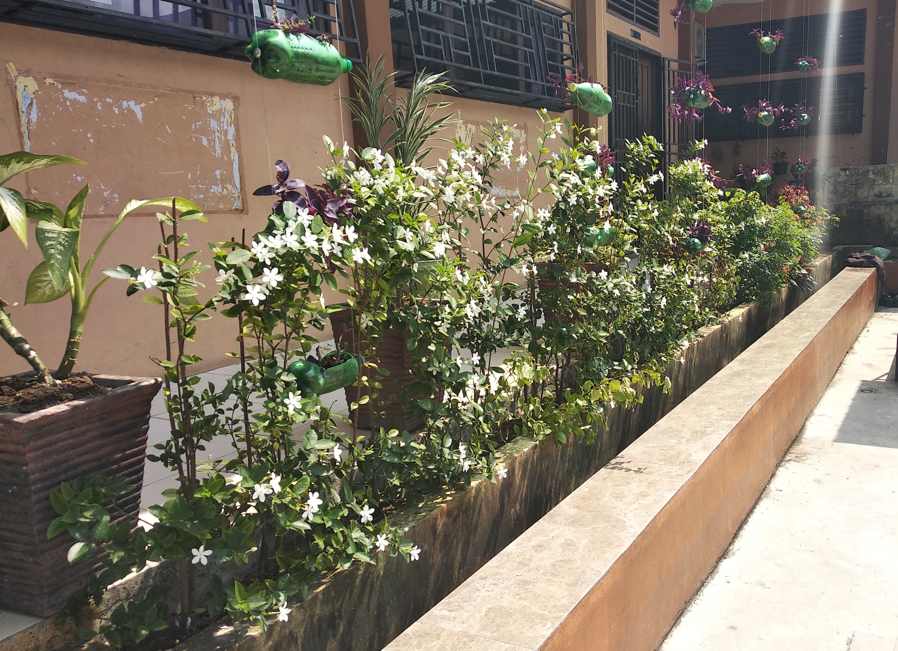 Begitu juga dengan menata taman yang indah dan asri, sisa halaman ditami tumbuhan yang bermanfaat, seperti bungga, Pandan wangi, sehingga halaman sekolah tampak hijau berbunga, bersih dan Asri, mengeluarkan hosigen berguna untuk kesehatan dan menyejukan, ketusnya.