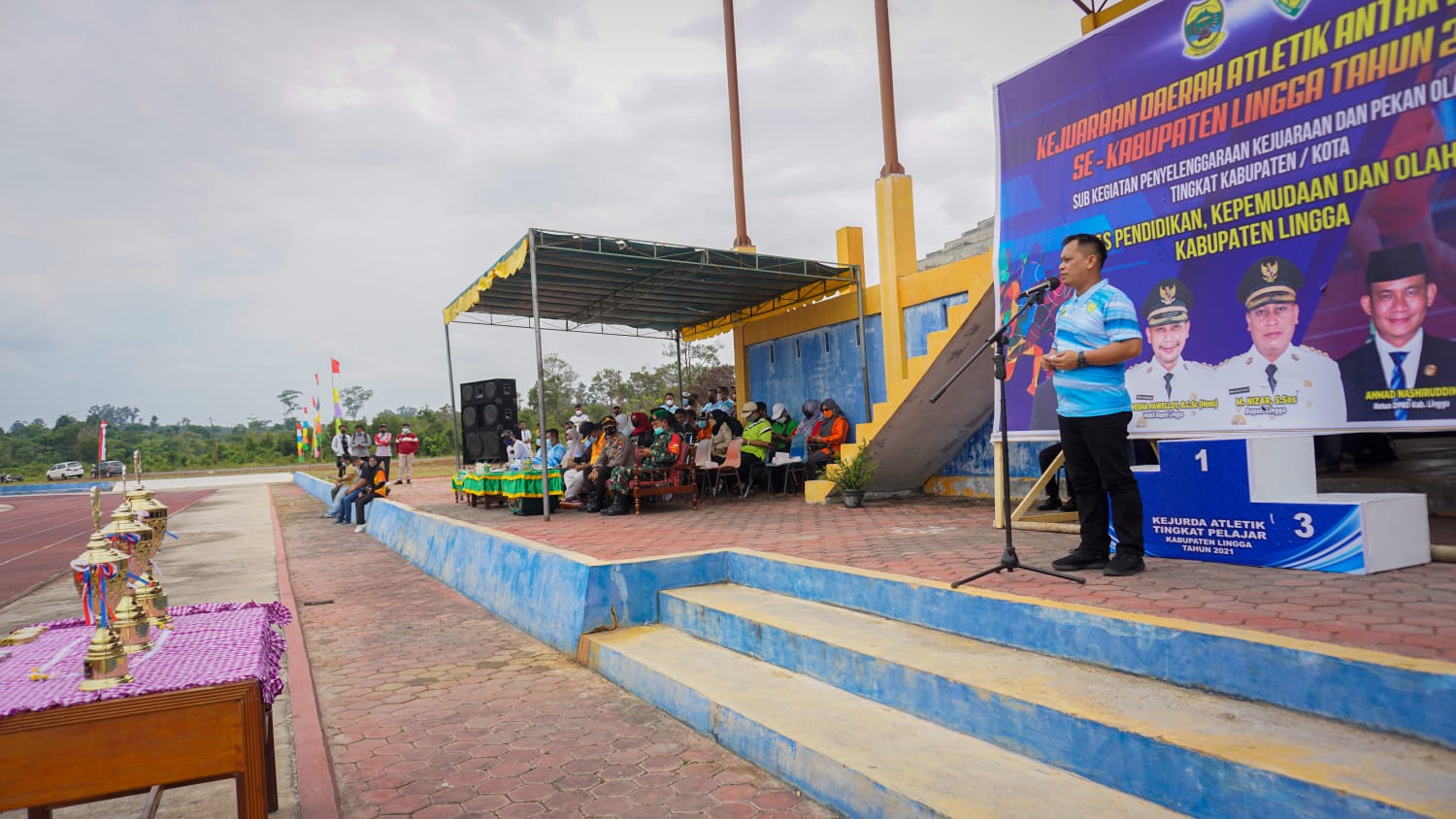 “Kehadiran saya disini karena lapangan yang kita punya ini, kalau tidak salah bertarap nasional, maka kami sangat berharap banyak, kepada para Atlit kita, tentunya dengan harapan Lingga mampu mempertahankan juara umum,” jelas Nizar.