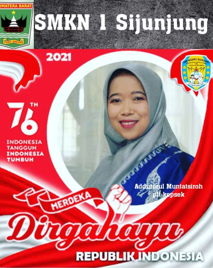 Mengenag jasa para pahlawan kemerdekaan Negara Repoblik Indonesia sebagai tenaga pendidik Plt. Kepsek Beserta keluarga besar SMKN 1 Sijunjung, ucapkan selamat Hut Kemerdekaan RI ke 76 tepatnya 17 Agustus 2021. Dengan Moto, Indonesia Tangguh, Indonesia Tumbuh.