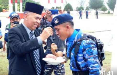 Natuna, leadernusantara.com-Dalam rangka Hari Ulang Tahun (HUT) Tentara Nasional Indonesia (TNI) ke 77 tahun, Bupati Natuna, Wan Siwandi dan Ketua DPRD Natuna, Daeng Amhar imenyampaikan ucapan selamat. Peeringatan HUT TNI ke-77 ini dihadiri Komandan Gugus Tempur Laut (Danguspurla) Koarmada I Laksma TNI H. Krisno Utomo sekaligus bertindak sebagai insptur upacara.