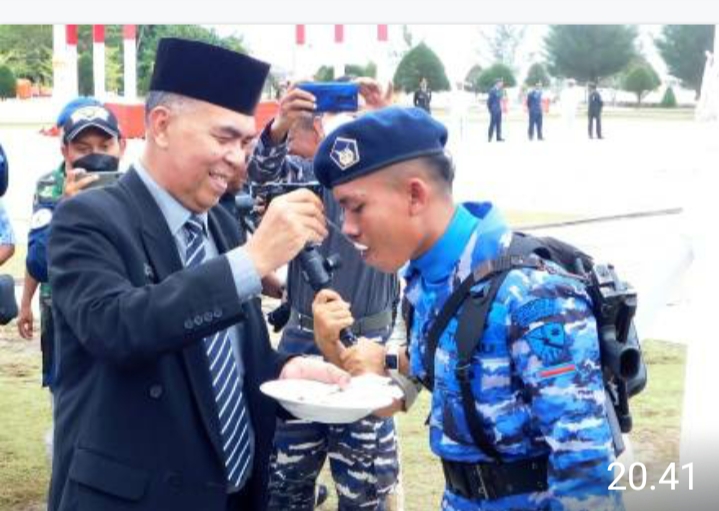 Wan Siswandi juga menyuapi 4 orang anggota TNI termuda dari berbagai satuan, sebagai ucapan selamat HUT TNI dari pemerintah daerah Natuna. (red)