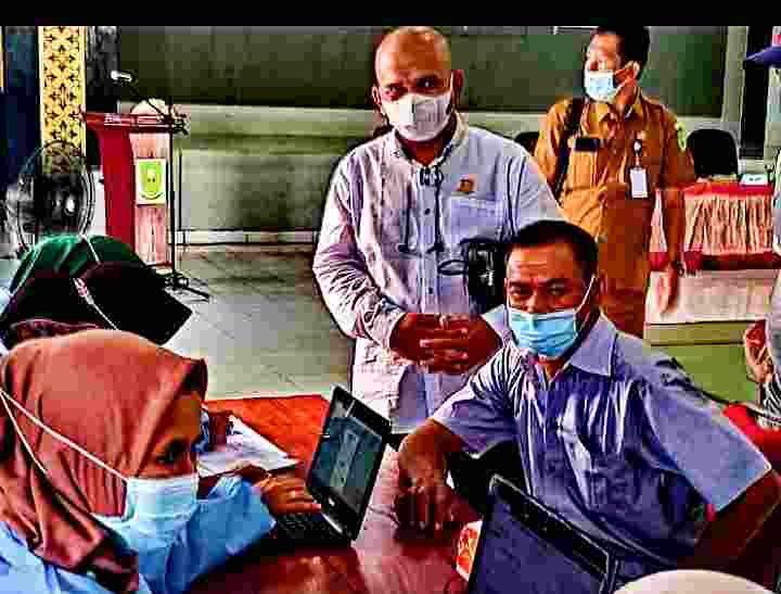 Aris beserta Bupati Natuna Wan Siswandi dan rombongan juga meninjau pelaksanaan vaksinasi secara massal yang dilaksanakan di Gedung Serbaguna Kecamatan Subi.