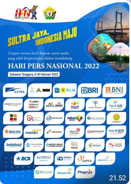 Jakarta, leadernusantara.com-Ketua Umum PWI Pusat Atal S Depari selaku penanggung jawab Hari Pers Nasional (HPN 2022) Memberikan apresiasi dan ucapan terima kasih kepada Pemerintah Povinsi Sulawesi Tenggara terutama Gubernur Ali Mazi dan seluruh Jajaranya yang telah bekerja keras dan meberikan kontribusi nyata sehingga HPN 2022, meski masih berlangsung di tengah suasana pandemi namun semua bisa berjalan dengan baik.