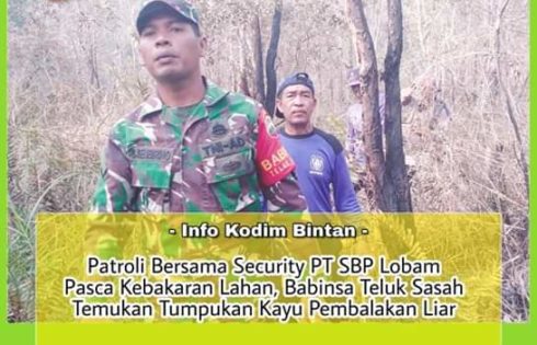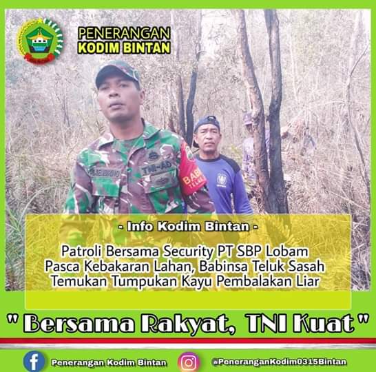 Bintan (leadernusantarq.com) – KODIM Bintan melalui Babinsa Desa Teluk Sasah Koramil 03/Binut Kodim 0315/Bintan Serda S. Sembiring bersama Security PT. SBP Lobam menggelar patroli bersama pasca kebakaran lahan milik PT SBP Lobam minggu silam.