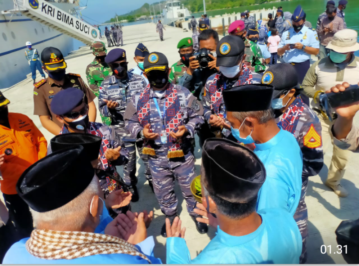 Natuna, leadernusantara.com- Komandan Lanal Ranai, Kolonel Laut (P) Dofir, didampingi Ketua Jalasenastri Cabang 8 Korcab IV DJA I Ny. Firliya Dofir menyambut kedatangan KRI Bima Suci-945 di dermaga Faslabuh TNI AL Selat Lampa Kab. Natuna. KRI Bima Suci-945 berkunjung dalam rangka mendukung kegiatan Kartika Jala Krida (KJK) Taruna/Taruni AAL tingkat III angkatan 67 tahun 2020. Rabu pagi (11 November 2020)