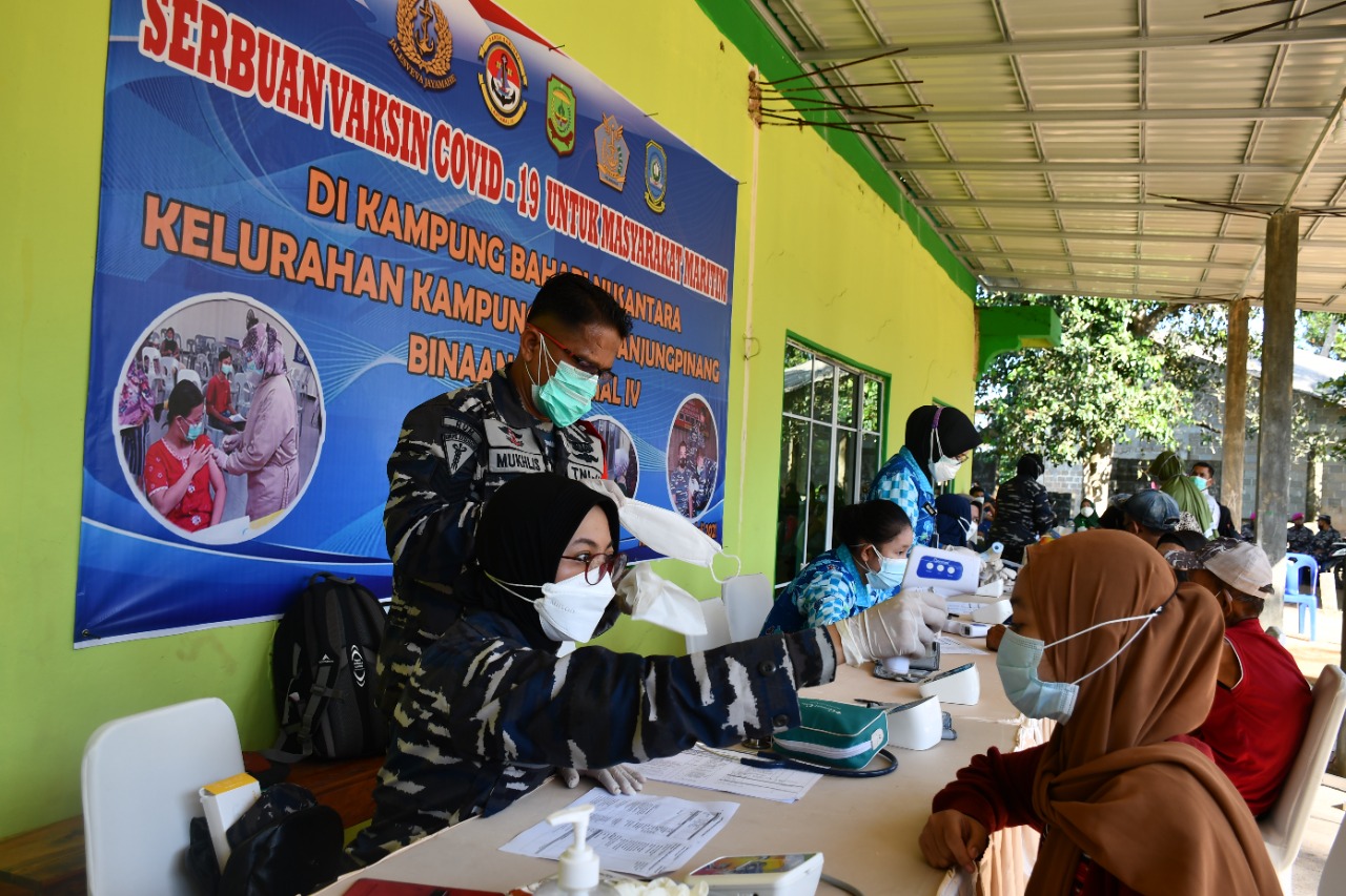 Tanjungpinang (leadernusantara.com) – Pangkalan Utama TNI Angkatan Laut IV (Lantamal IV) terus focus melakukan Serbuan Vaksin Covid-19 untuk Masyarakat Maritim di Kelurahan Kampung Bugis yang merupakan Kampung Bahari Nusantara, binaan dari Lantamal IV, Sabtu pagi (03/7/2021)