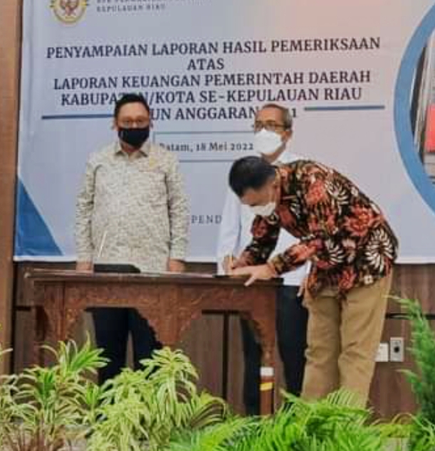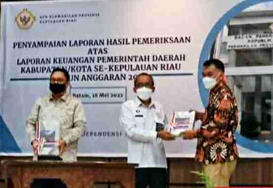 Pemerintah Daerah Kabupaten Natuna kembali marih opini Wajar Tanpa Pengecualian (WTP) atas penyampaian Laporan Hasil Pemeriksaan (LHP) LKPD Tahun 2021 dari Badan Pemeriksa Keuangan (BPK) Perwakilan Provinsi Kepulauan Riau (Kepri), di Auditorium Kantor BPK Perwakilan Provinsi Kepri, Jalan Raja Isa, Batam Center, Kota Batam, Rabu (18/5/2022).