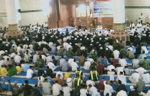 Bupati Natuna, Ketua berserta Anggota DPRD Natuna, Sekda Natuna, para FKPD, pimpinan OPD, serta ratusan jemaah dari masyarakat Kabupaten Natuna yang terlihat khusuk mengikuti Zikir dan do’a. (Herman)