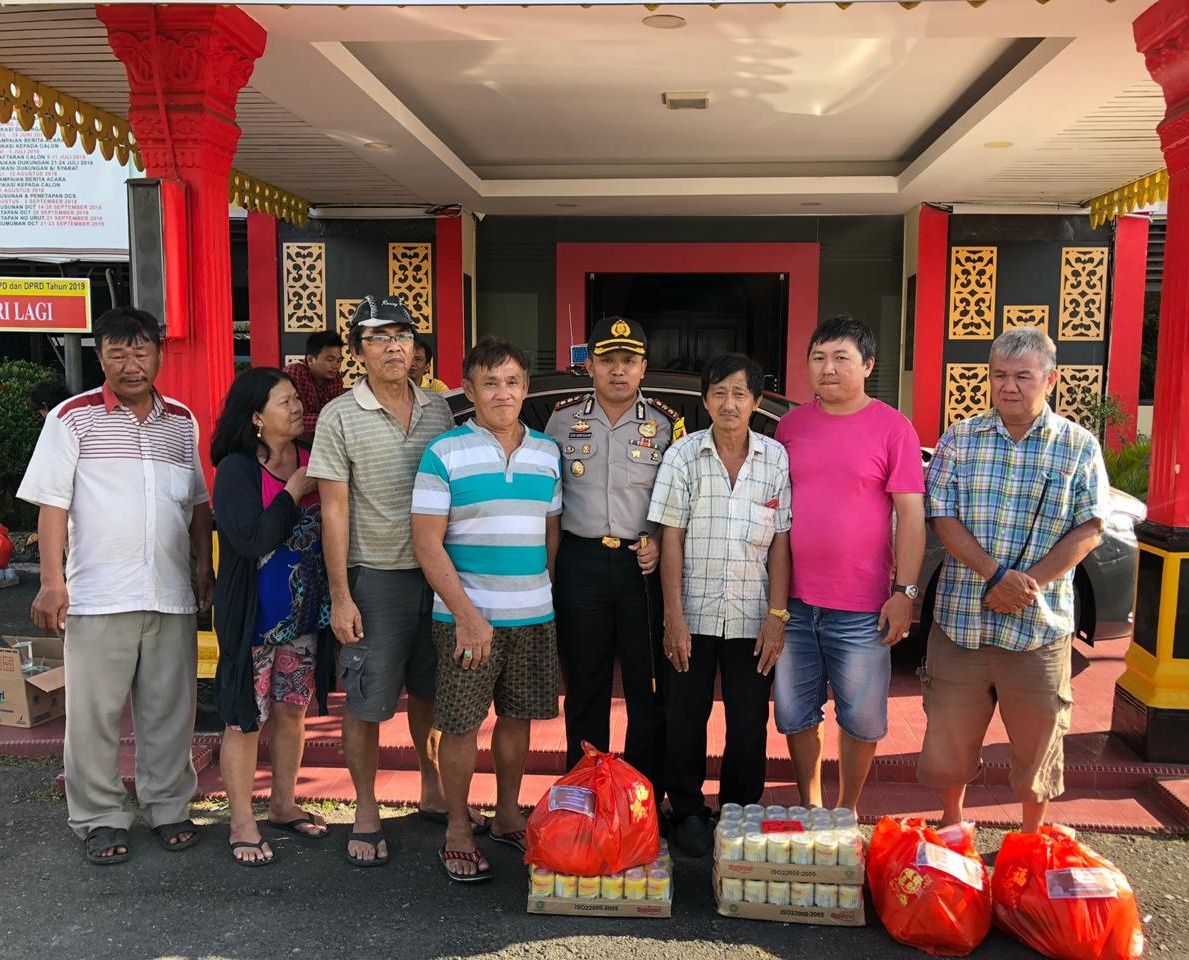 Paket Sembako yang diserahkan orang nomor satu di Polres Tanjungpinang ini diterima oleh 10 orang perwakilan dari 42 orang warga thionghoa yang kurang mampu.