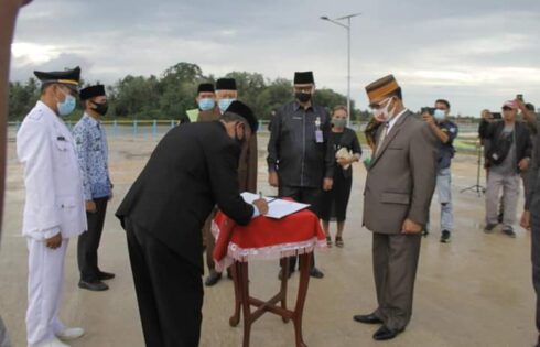 Lingga (leadernusantara.com) – Bupati Lingga Alias Wello, S.IP kembali melantik 140 orang pejabat eselon II, III dan IV, oranganisasi perangkat daerah (OPD) tanpa mengabaikan Protokol Kesehatan Covid 19, di destinasi baru Embung Bukit Tumang, Kelurahan Raya, Kecamatan Singkep Barat, Kabupaten Linggga berjalan lancar menyejuk suasana tempatnya sangat sederhana.