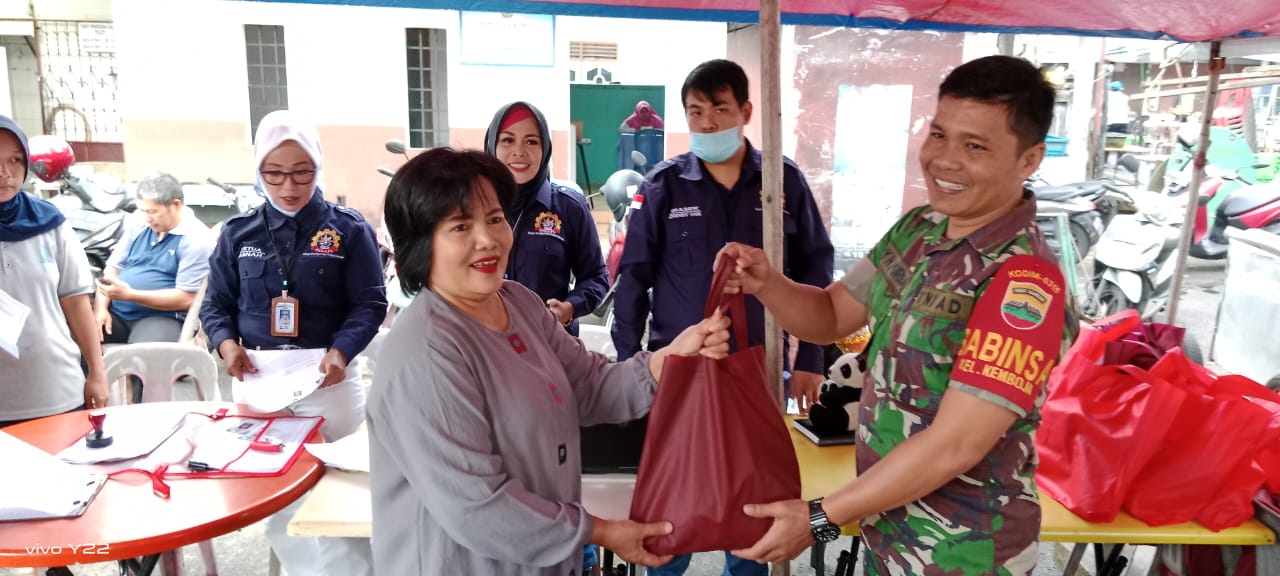 foto pengurus P2KAPL bersama Babinsa membagikan bngkisan kepada pedagang Akau Potong Lembu
