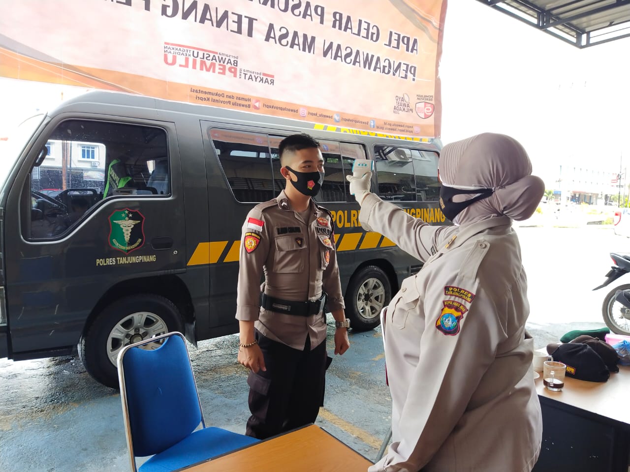 Seluruh personel yang bertugas melaksanakan pengamanan di Kantor KPU Provinsi Kepri, Kantor Bawaslu Provinsi Kepri, Kantor KPU Kota Tanjungpinang, dan Kantor Bawaslu Kota Tanjungpinang menerima pemeriksaan Kesehatan seperti tekanan darah dan menggukur suhu tubuh, menggunakan thermo gun, serta pemberian vitamin pada personel untuk mengantisipasi paparan Covid-19.
