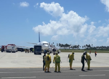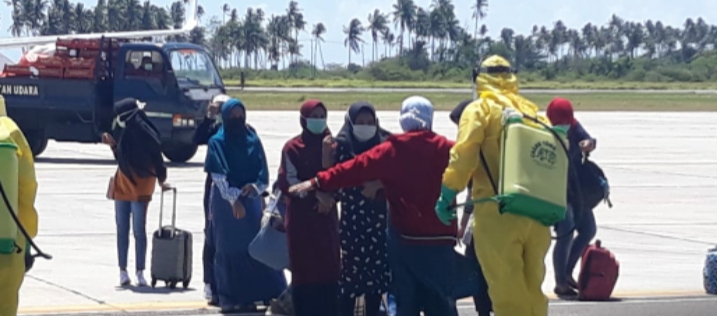 Dari pantauan media ini terlihat setiap penumpang yang turun dari pesawat di Bandara Raden Sadjad Ranai, terus dilakukan pemeriksaan serta di semprot disinfektan. Hal tersebut sudah dilakukan dari beberapa hari yang lalu.